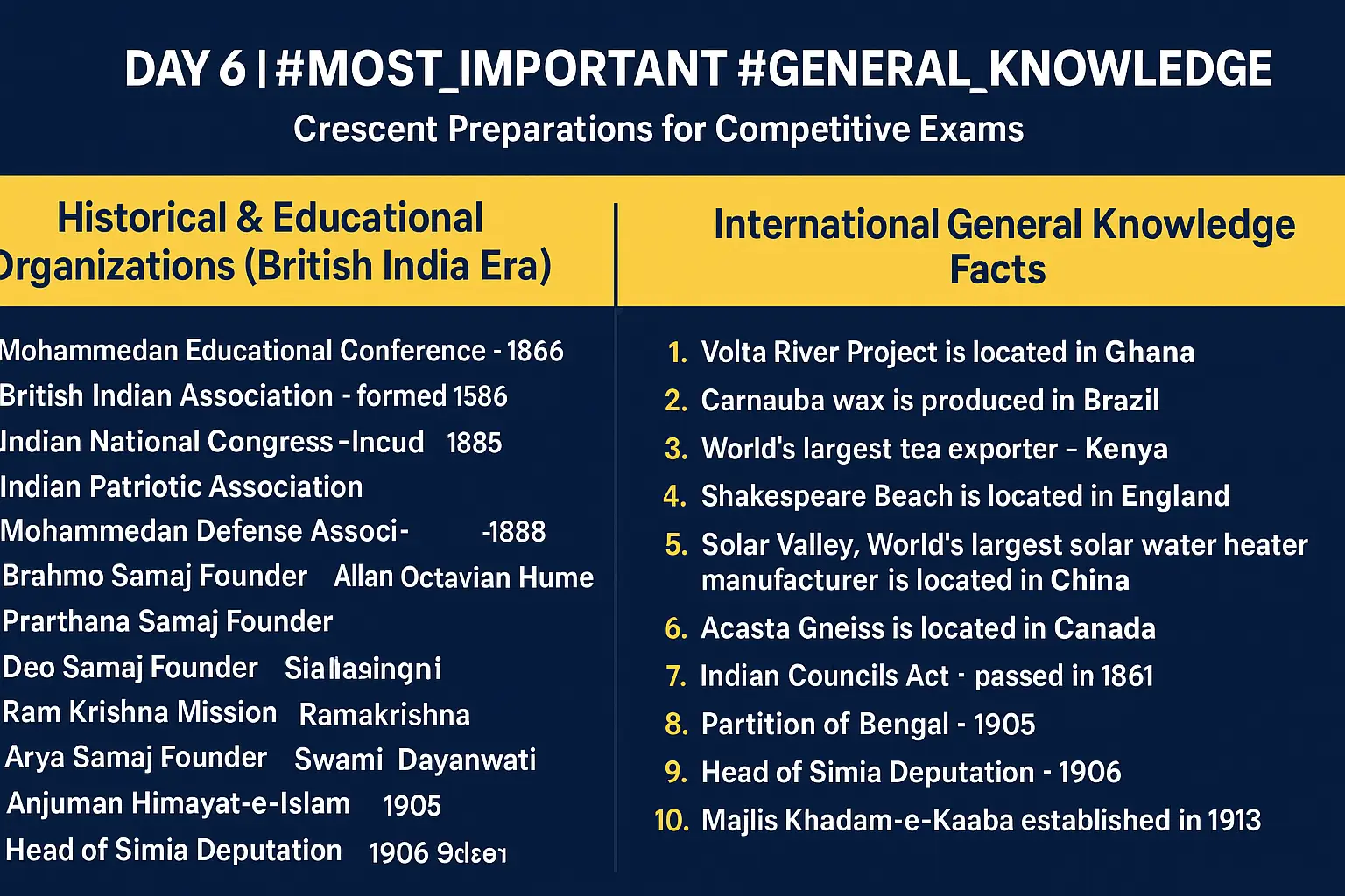 #MostImportantGK #Day6 #GKforPMS #GKforCSS #CompetitiveExams #CrescentPreparations #CSSPreparation #PMSPreparation #FPSC #PPSC #NTS #CurrentAffairs #PakistanStudies #GeneralKnowledgeMCQs #HistoryOfIndia #SirSyedAhmadKhan #EducationMovements #LearnWithCrescent